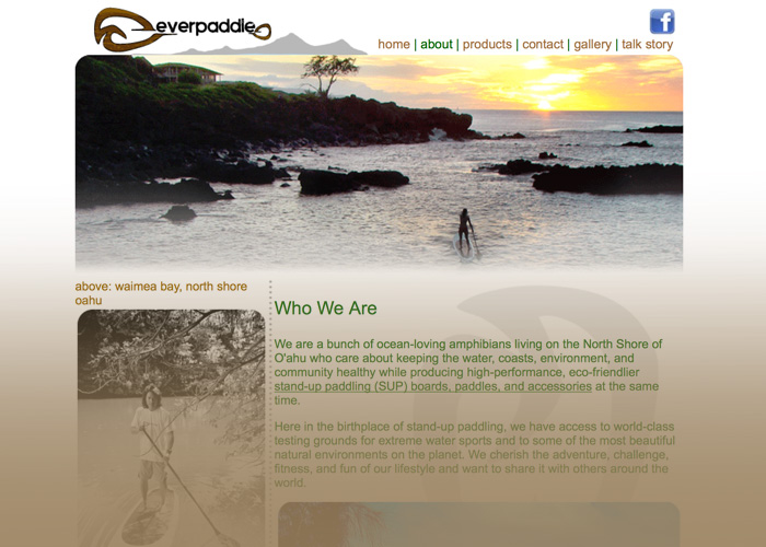 Visual treatment designed to engage a target audience of stand up paddle boarders. This design supports this outdoor lifestyle company's commitment to the environment and healthy communities.